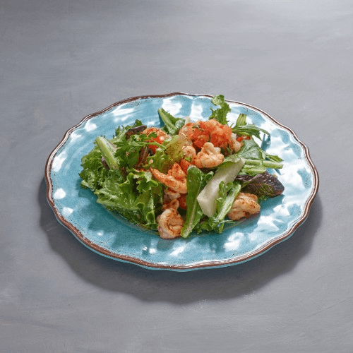 Shrimp, mixed greens, jicama, grated carrot, cherry tomatoes, and balsamic vinaigrette.