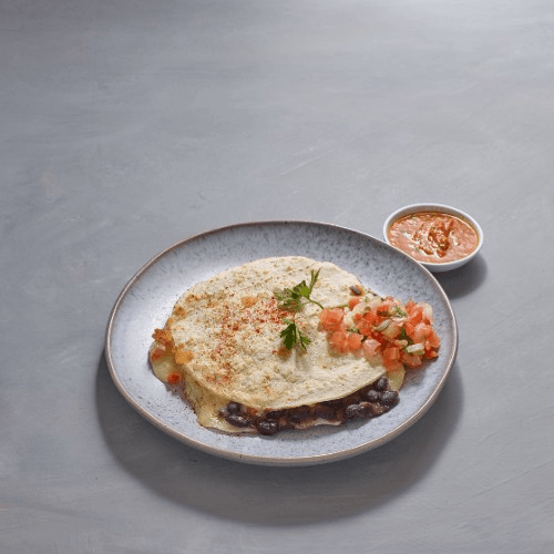 Cooked tortilla that is filled with cheese.