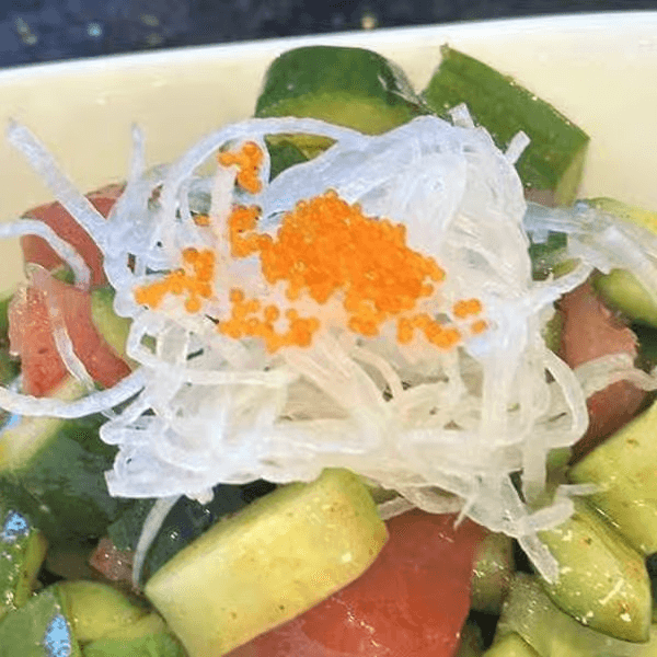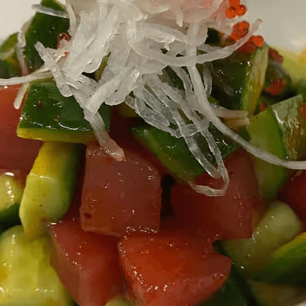 Tuna, cucumbers, tobiko, with home made mild spicy sauce