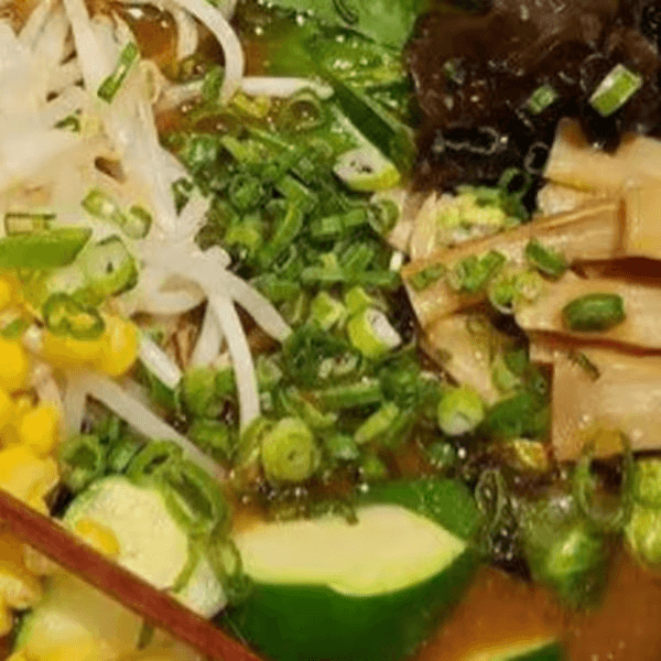 Zucchini, fungus mushroom, bamboo shoots, corn, spinach, brussels sprouts, bean sprouts, and with miso broth