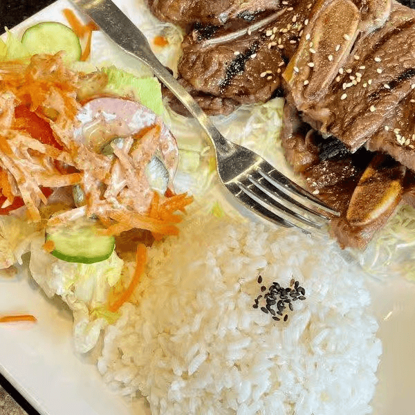 Comes with salad and steamed rice