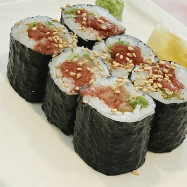 Blue fin toro, takuan, and green onion