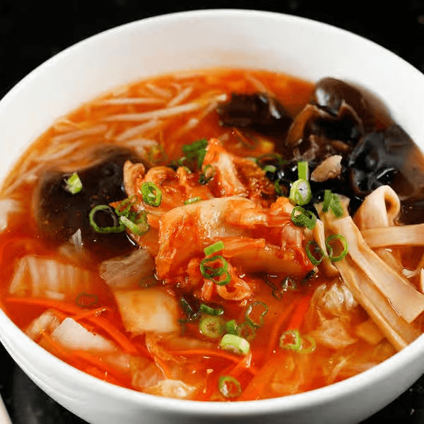 Kimchi, bean sprouts, napa, and shiitake mushroom with homemade kimchi broth, and green onion