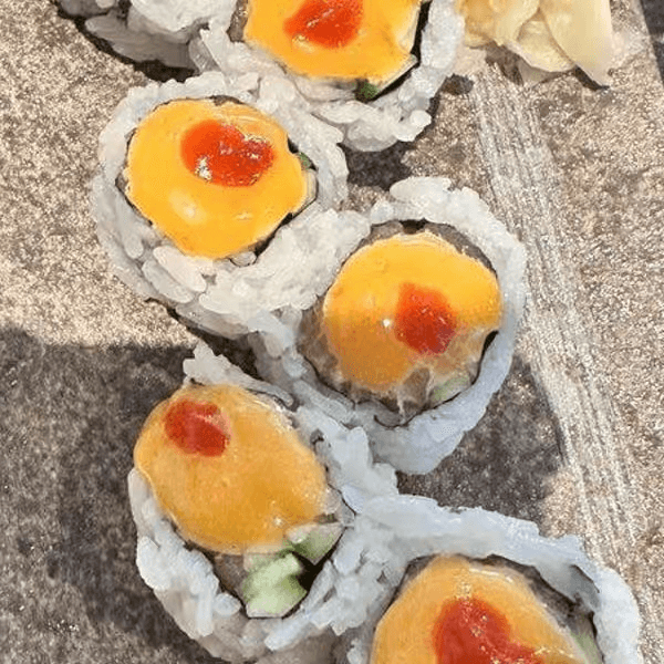 Spicy tuna, topped with mango & spicy sauce