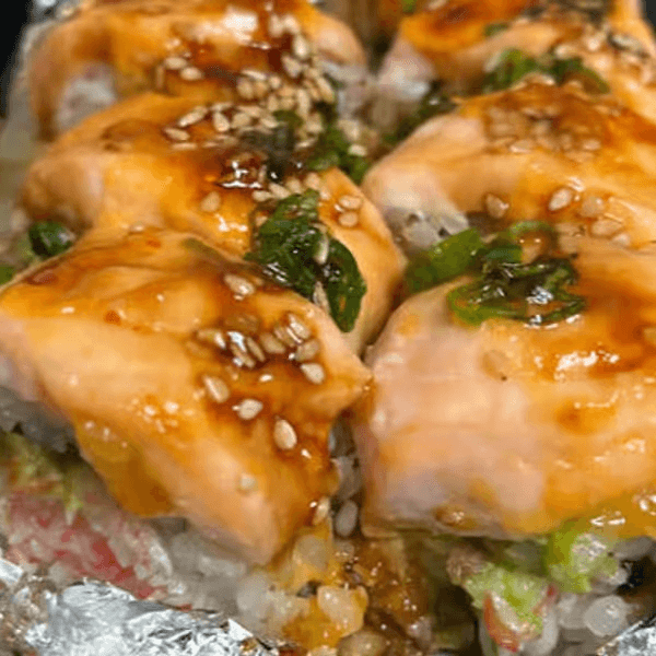 Imitation crab meat, salmon, eel, hamachi, unagi sauce and onion